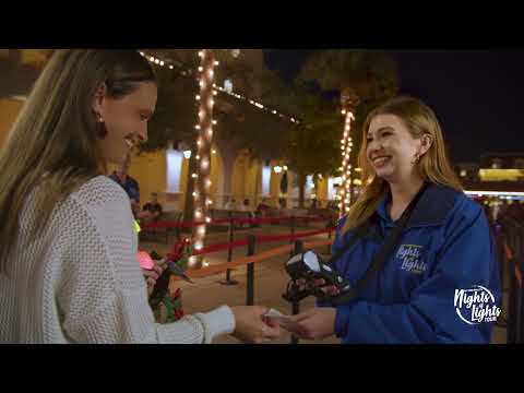 - Third, Nights of Lights is a walking event and a tour event. Leave your car in a free lot, take a free shuttle to the Visitor Information Center, walk around town, and ride on a carriage, a trolley, a red train, or a golf cart.