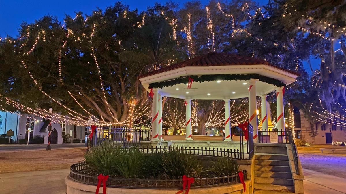 The lights switch on with great ceremony on the evening of Saturday, November 15, 2025. Light-Up! Night begins at 4:00 p.m. with live entertainment on King Street in front of the Lightner Museum. The festivities continue at 5:00 p.m. at the Plaza de la Constitućion. The free shuttles start at 1:00 p.m. on the 15th.
