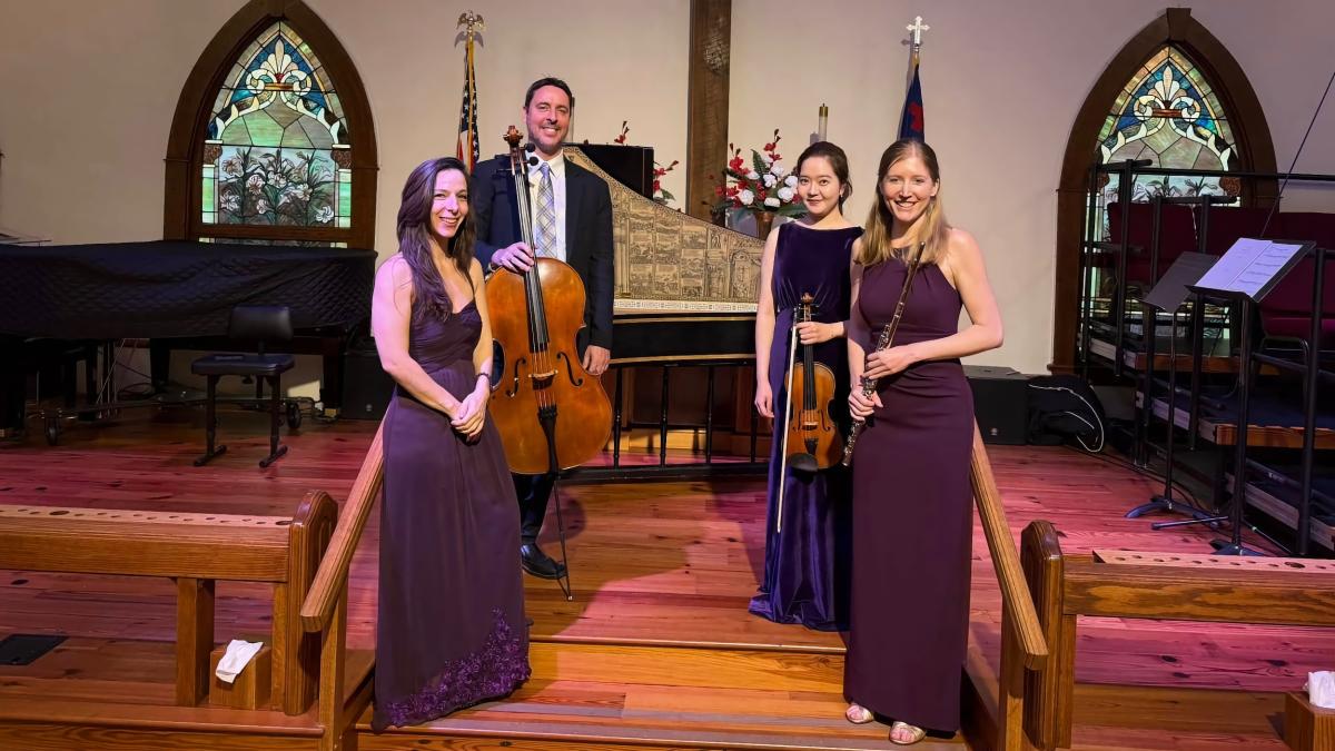 The musicians, Angela Massey on flute, Seeun Baek on violin, Thomas Maternik-Piret on cello, and Alexandra Dunbar on Harpsichord, are all members of the esteemed Astralis Ensemble. Ensemble members perform worldwide in several instrument pairings and groupings.