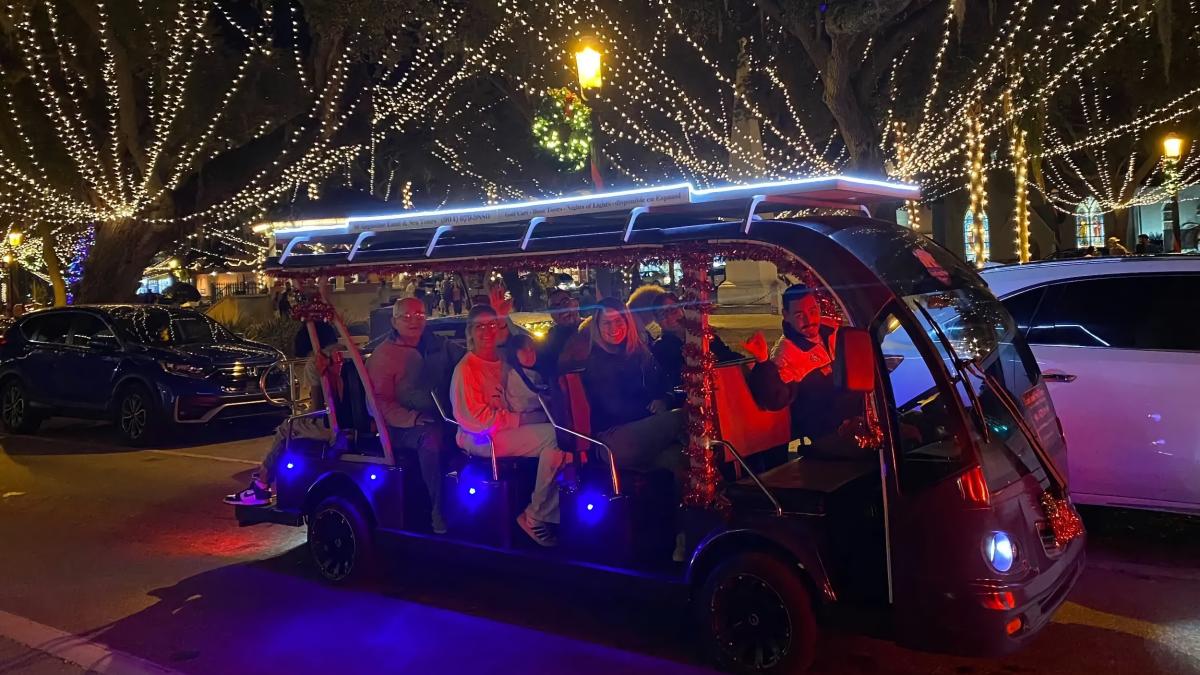 St. Augustine Land & Sea Tours offers private and shared electric cart tours during St. Augustine's annual Nights of Lights festival, beginning on Saturday, November 15, 2025, and continuing daily through January 11, 2026.