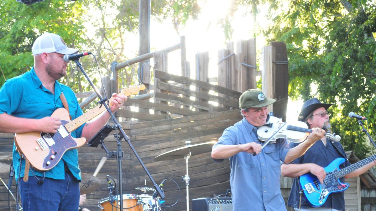The recently formed Muhly band is playing "everything they can pull off." This lineup is JT Broyles on lead guitar and vocals, Kevin Mileski on drums, TR Zielinski on his fabulous white fiddle, and a bass player and vocalist whose name is elusive. Covering familiar songs with smooth vocals and the sweet fiddle, Muhly makes the crowds stop conversing, and listen.