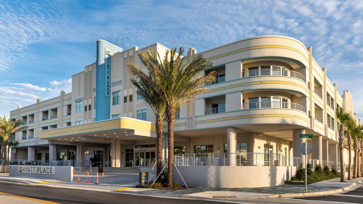 Hyatt Place is a resort-style hotel with elegant art deco decor and a rooftop bar with views of both the Atlantic Ocean and the Intercoastal Waterway.