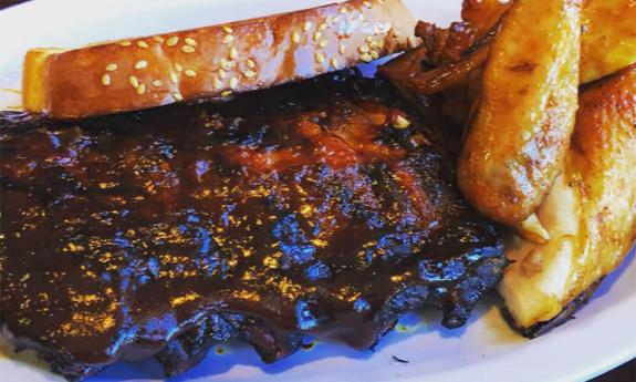 All the meats are slow-smoked in-house: brisket, pulled pork, turkey, ribs, chicken, and smoked sausage. A variety of BBQ sauces are also available to add some kick. Platters are served with Texas toast and one or more of the classic southern sides including baked beans, coleslaw, collard greens, and ear-fried corn.
