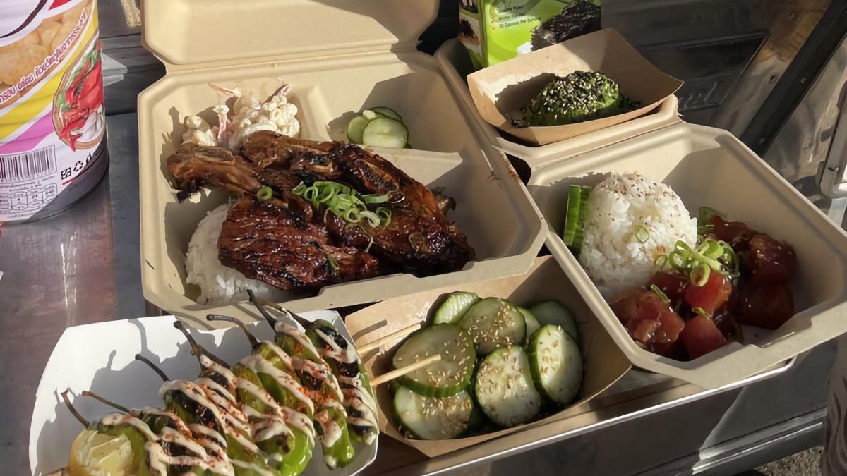 Hot Box, a food truck at Spinster Abbott's Market, offers traditional and new Hawaain favorites. This Uptown food truck hosts a pleasant outside dining experience, as well as takeout and catering options.