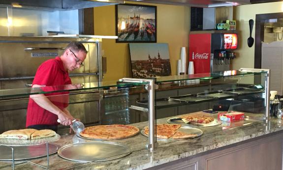 They also have pinwheels, which are pizza dough stacked with toppings, rolled, and then served in slices that look like pinwheels. The owners are from Long Island, New York and the main cook has been making pizzas since he was 13 years old. Everything is made fresh on site and nothing is kept over from one day to the next.