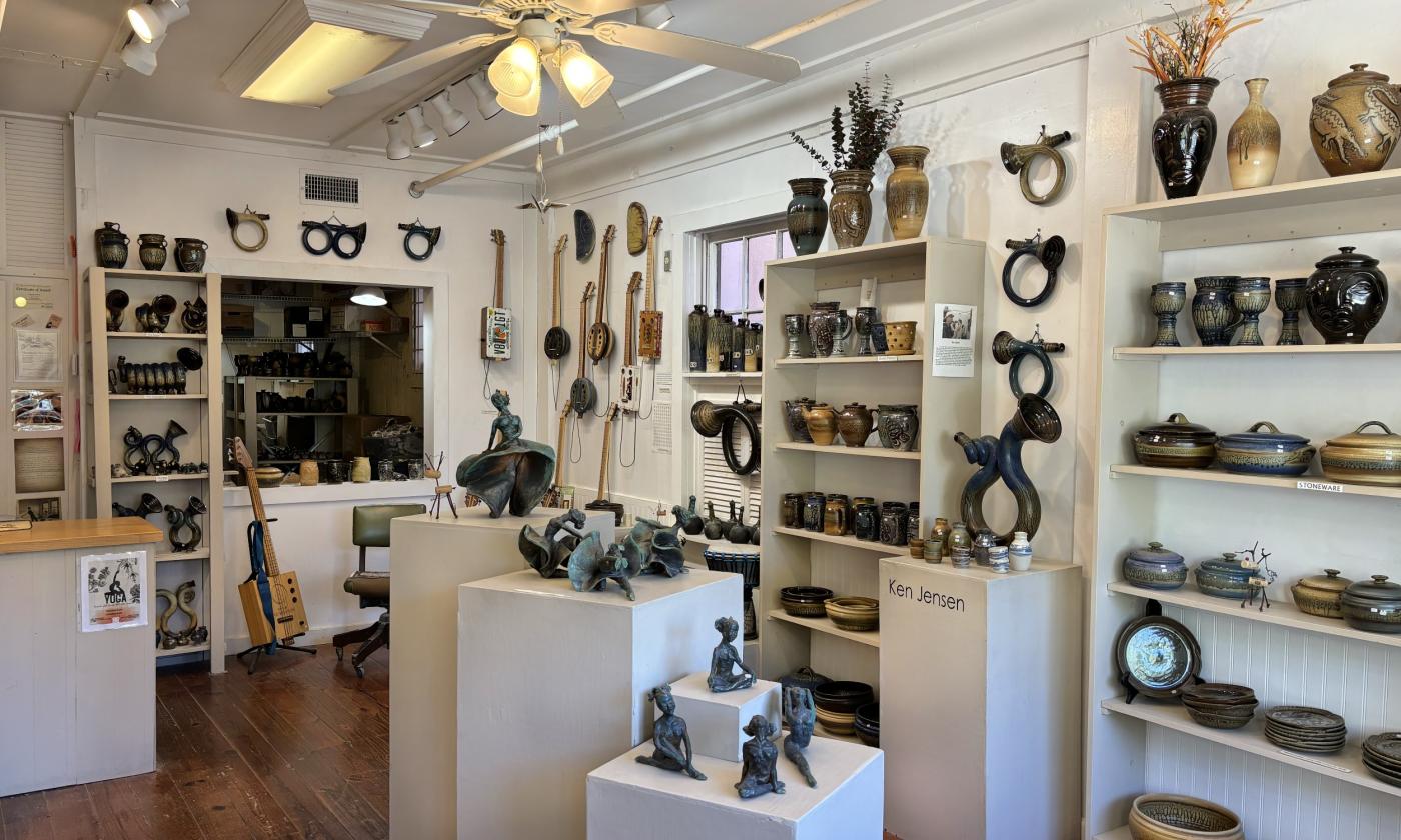 Located on Aviles Street, the studio features works by artists, Ken Jensen and Donna McCarthy-Jensen. Ken's work includes his line of stoneware and a line of musical instruments made from pottery: guitars, fantastic horns, and maracas. In addition, Ken creates raku pottery.