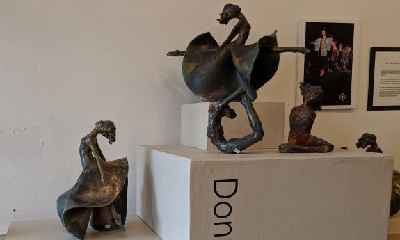 Donna McCarthy-Jenson, an accomplished artist and yoga instructor, shows her love and understanding of the human form in sculptures of dancers with flowing dresses and women in yoga poses. Donna also employs the raku firing method, creating pieces celebrating movement and beauty.