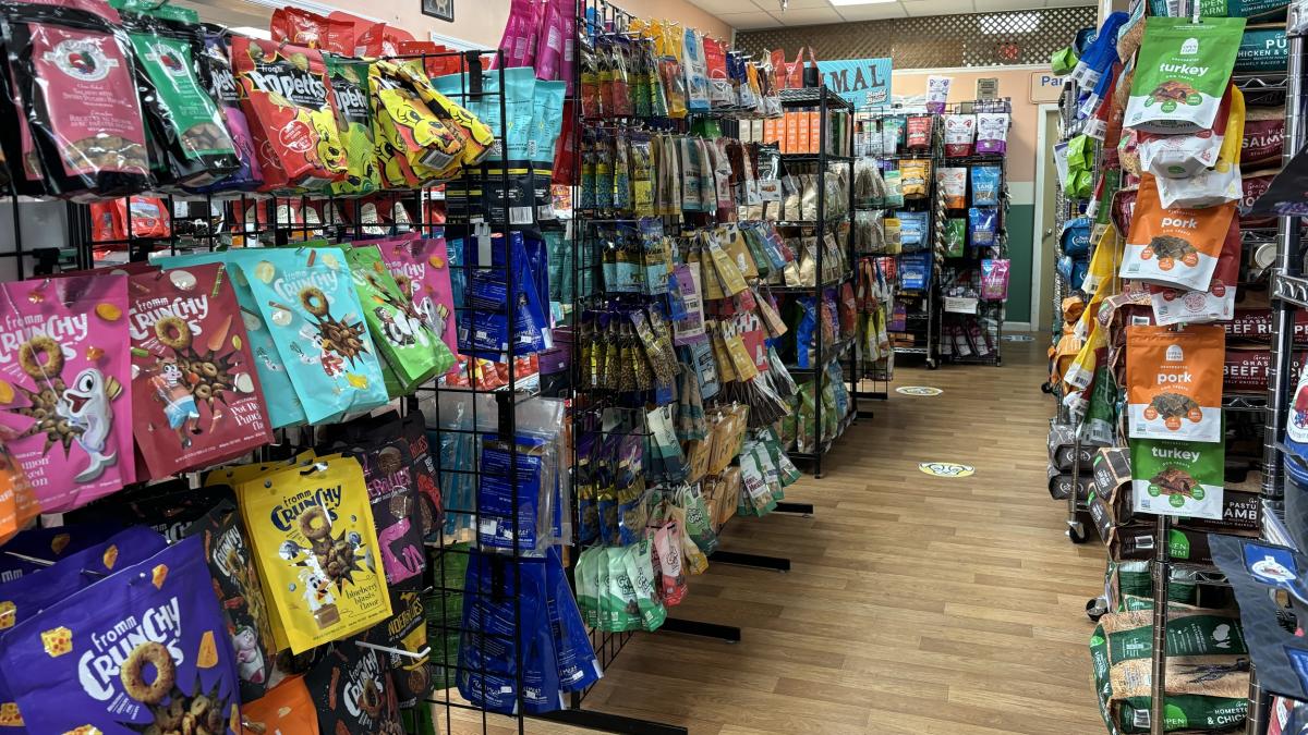 The business carries a wide assortment of natural foods — kibble, canned, and raw — with no wheat, corn, or soy in any of the products. CBD options are also available. Pick-up additional items such as leashes/collars, harnesses, toys, clothes, and bakery delicacies.