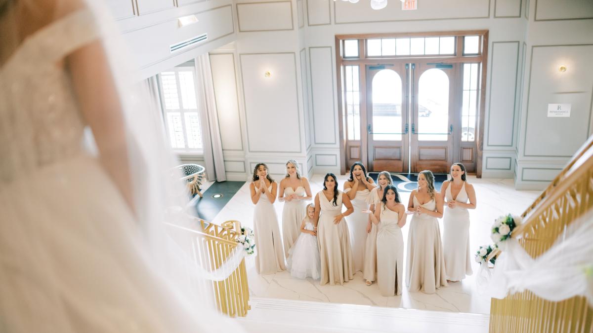 The public rooms and ballroom exude warmth and elegance, and set the scene for beautiful photos — from the stunning grand staircase to the dramatic columns, soaring ceiling, and intimate corner seating areas. The ballroom and event spaces can accommodate events of various sizes, including intimate rehearsal dinners, post-wedding brunches, wedding ceremonies, and lovely receptions for up to 220 people.