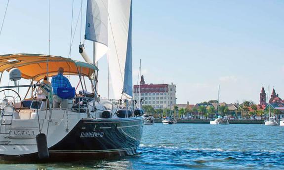 Sailing adventures can include time to anchor near a popular swimming spot where kayaks or a water swim platform can be enjoyed while the crew barbecues lunch or an early dinner. Charter guests may ask the captain and crew to take the boat through the St. Augustine Inlet for a sail along the Northeast Florida Coast.